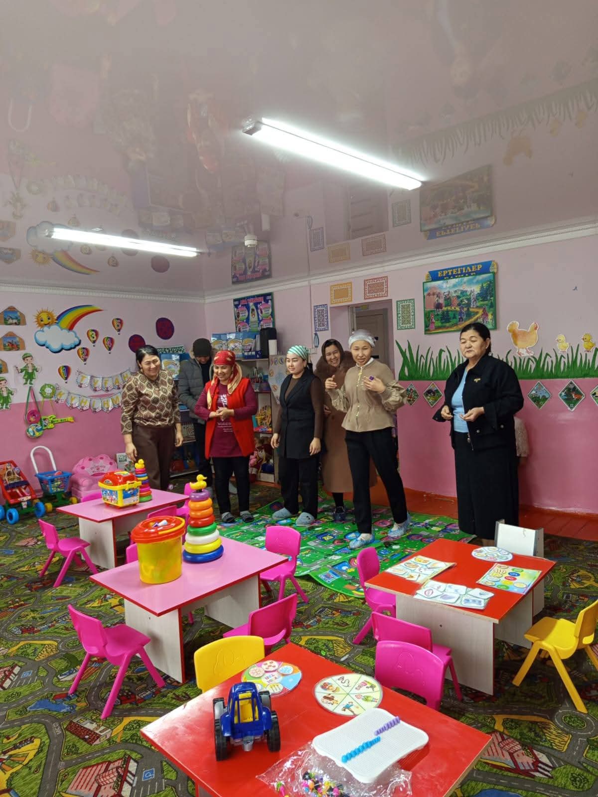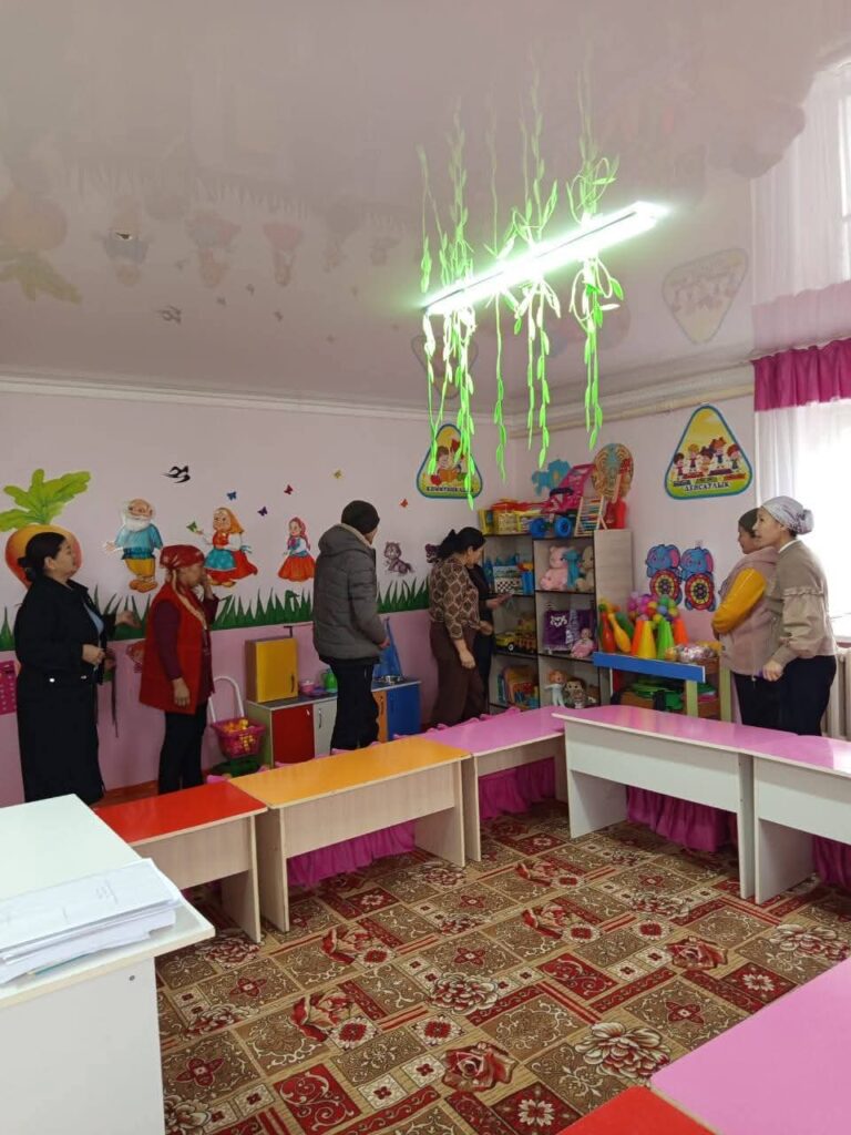 Жетісай ауданы Мақталы ауыл округі, Алмалы ауылы Түркістан көшесі 13үй. «Сәби әлемі» бөбекжай балабақшасында ата-аналар мен консультациялық пункт ашылды. Консультациялық пункт жұмыс жоспары құрылып бекітілді, жауапты мамандар тағайындалды. Жоспар бойынша жұмыс жүргізілуде. Ата-аналарды балабақша тыныс тіршілігі мен таныстыру жұмыстары жүргізілуде.